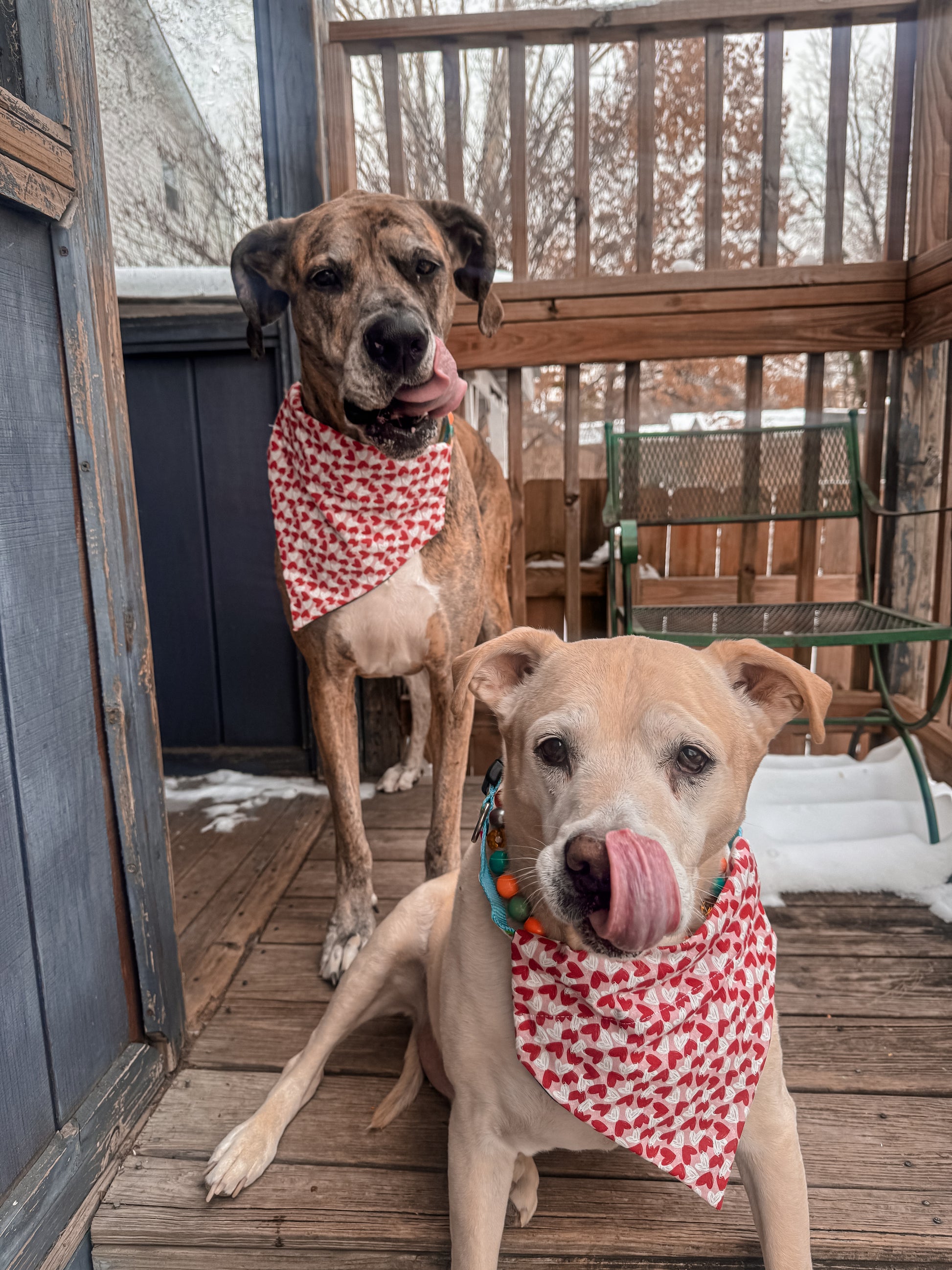 Made to fit pets of all shapes and sizes, from tiny cats to towering Great Danes (mine wear larges!), these bandanas make it easy to include every fur baby in the latest fashion.