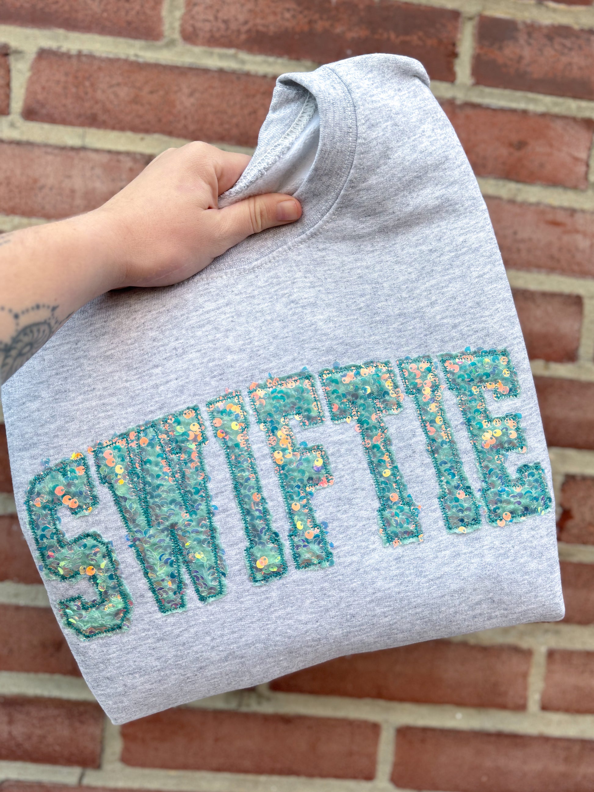 This ash grey unisex sweatshirt features a REAL sequin, fully embroidered full-chest design that catches the light beautifully with every move. Each piece is carefully stitched (not vinyl or printed!) for a luxe, high-quality finish that stands out while still being cozy and wearable.